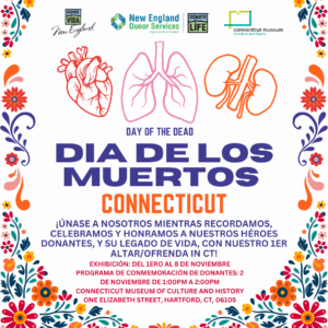 In the spirit of the Día de Muertos celebration, a time to honor, remember and celebrate the lives of our loved ones who have passed, New England Donor Services / Done Vida New England is proud to participate in the Connecticut Museum of Culture and History’s weeklong celebration from November 1st to November 8th, located at One Elizabeth Street, Hartford, CT 06105.